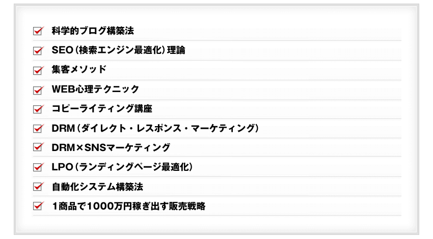 月収100万円以上稼いでいる方にも「勉強になった」「知識を整理できた」という声を多数頂いております。しかし、「知っているかどうか」でしか教材を評価できない方に手にして頂くのは、私の望むところではありません。そのため、過去にDRMをどこかで学ぶなどして、ご自分の知識に自信がある場合、購入して頂く必要はありません。